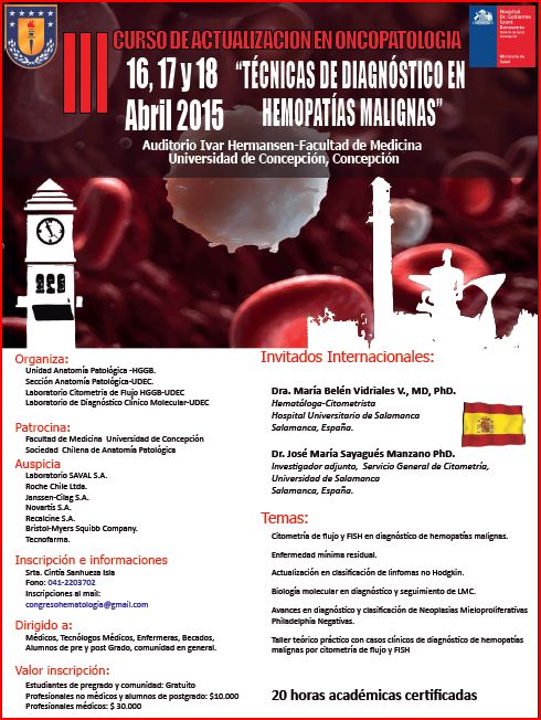 Médicos, tecnólogos médicos, enfermeras, becados y alumnos de pre y postgrado se reunirán bajo el lema "Técnicas de diagnóstico en hemopatías malignas".