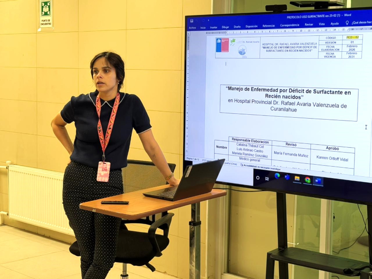Su manejo adecuado considera prevención prenatal, soporte respiratorio no invasivo y terapia de reemplazo oportuna. En este contexto, con el objetivo de estandarizar la atención, optimizar los tiempos de respuesta y reforzar la seguridad clínica, el Hospital Provincial Dr. Rafael Avaria Valenzuela de Curanilahue realizó una capacitación destinada a difundir un nuevo protocolo para el abordaje de estos casos.